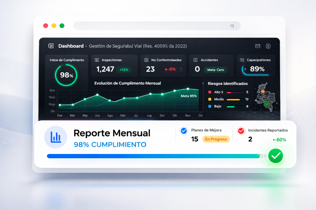 Centraliza, monitorea y optimiza tu Plan Estratégico de Seguridad Vial (PESV). Toma decisiones basadas en datos y cumple con la ley sin complicaciones.
